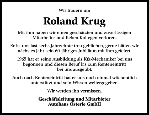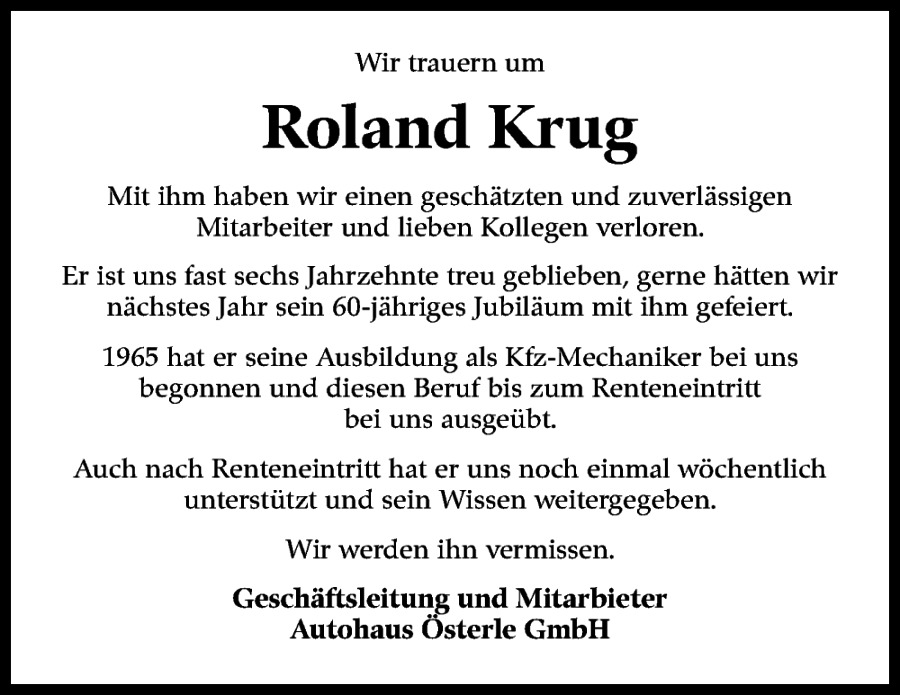 2015-08-03 Roland Krug feiert sein 50-jähriges Betriebsjubiläum Das Team vom Autohaus Österle bedankt sich für die tolle Zusammenarbeit und seine Treue! Quelle: Esslinger Zeitung - 03.08.2015